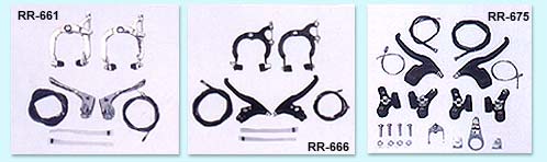 RR-675 : CANTILEVER BRAKE SET For MTB / ATB Bicycles. Plastic Moulded with steel insert. Easy cable attachment provided. Internal Spring designed. Adjustable Brake shoes complete with cable & Parts