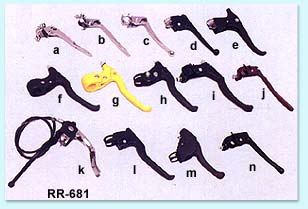 RR-681 : BRAKE LEVERS: (a,b,c,d,e, f, g, h, i, j, k, l, m, n) Suitable for BMX / MTB / SLR brake set. Material Steel / PVC coaled. Steel enforced Available in different colours.
